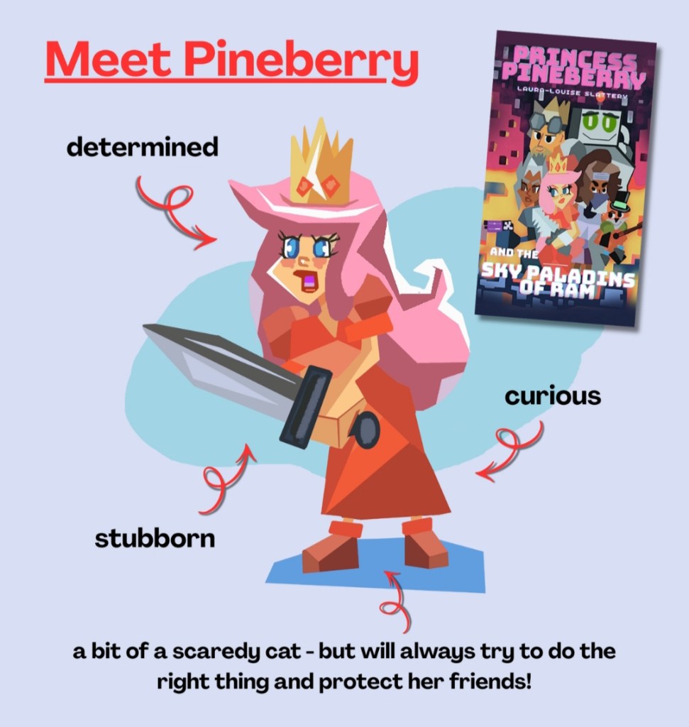 The novel’s heroine is Princess Pineberry, a video game NPC sprite from a fantasy role-playing game, who is sick and tired of being the fragile damsel in distress, always getting kidnapped and always being rescued by the hero. So she embarks on an epic adventure of her own, alongside a crew of renegade video game sprites who call themselves ‘sky paladins’. The princess intends to discover what lies outside of her video game world, as well as learning about friendship, and what it means to live on her own terms. Pineberry wishes for nothing more than to fight her own battles, and explore the world outside of her beloved Mooncake